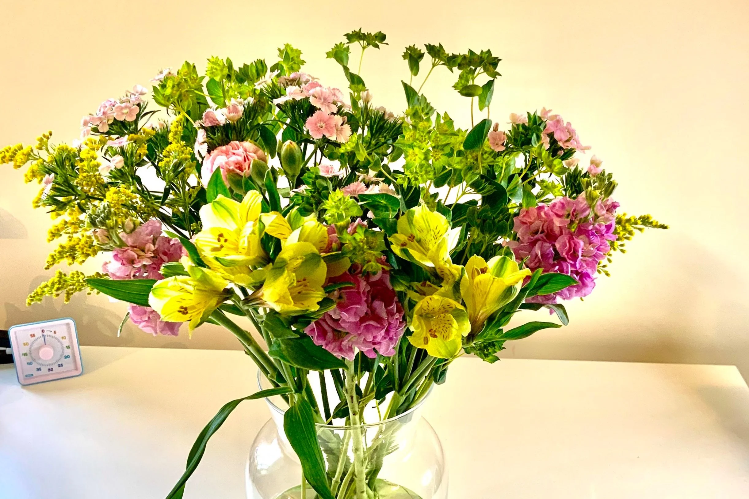 Saturday was a super chilled out day with a lazy start just snuggling on the sofa and laughing a lot while watching The Mitchels V's the Machines. I thoroughly recommend it if you've not seen it yet. My husband had some flowers delivered to me ready for Mothering Sunday.